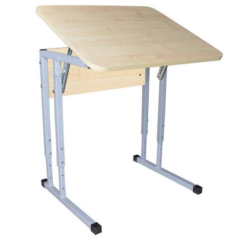 Стол-парта 1-местный, регулируемый угол, СУТ.54-01, 600х500х640-780 мм, рост 4-6, серый каркас, ЛДСП клён
